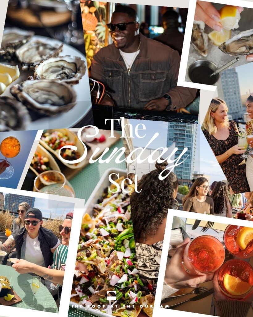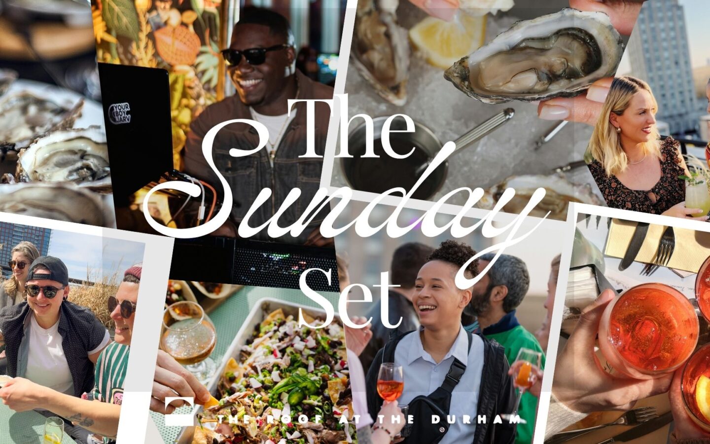 Summer Sundays belong to Sunday Set on the Roof — join us for the next one, May 31st, from 5 to 10 PM. DJ Jarvis on the decks from 5 to 8 PM, fresh oysters for $2, spritzes you create yourself for $10, and skyline views that remind you why you love Durham.